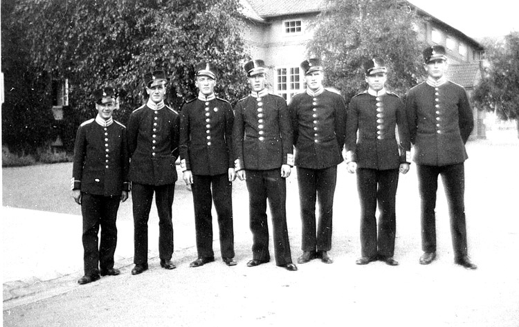 Ekjö 1937. Rekryter på sjukvårdsutbildning. Lars är nr två från vänster. Nr 1 från vänster kallades "lilla Larsson" därför att han var mindre än de andra.