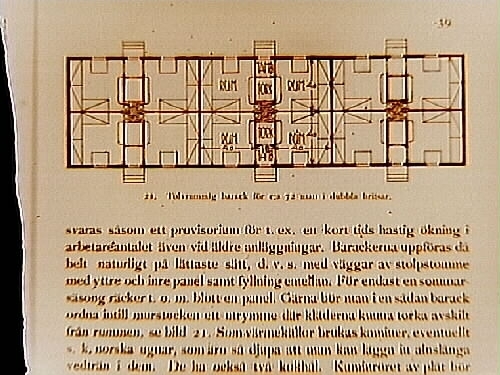 Husritningar till tolvrummig barack för c:a 72 män.