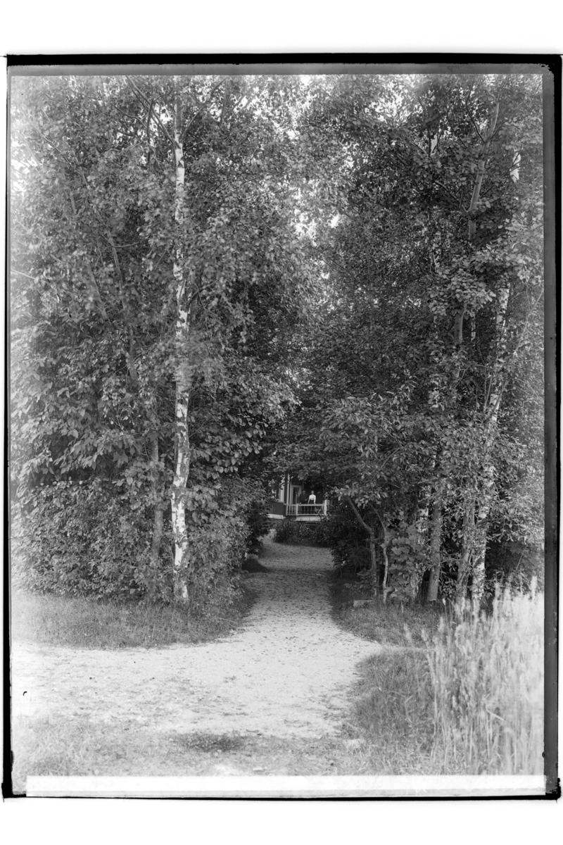 Tvåvånings sekelskiftes villa i trä, med torn, 2 personer.
