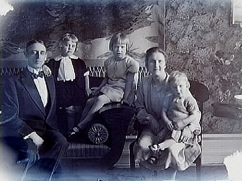 Rumsinteriör, familjegrupp, 5 personer.