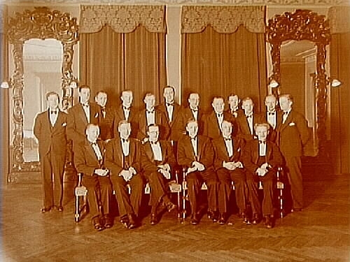 18 musiker, fanjunkare Gustafsson, på Stora Hotellet.