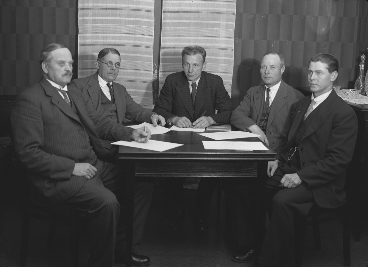 Längbro Egnahemsnämnd, fem herrar runt ett bord.
