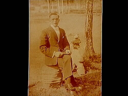 En man i trädgården.