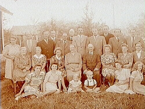 Släktgrupp tjugotre vuxna och två barn.