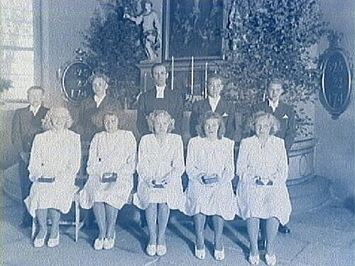 9 konfirmander, 5 flickor, 4 pojkar och pastor Sidvall.