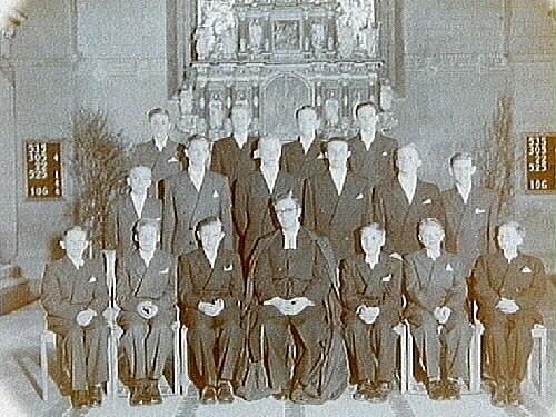 16 konfirmander, 16 pojkar och pastor R. Åsberg.