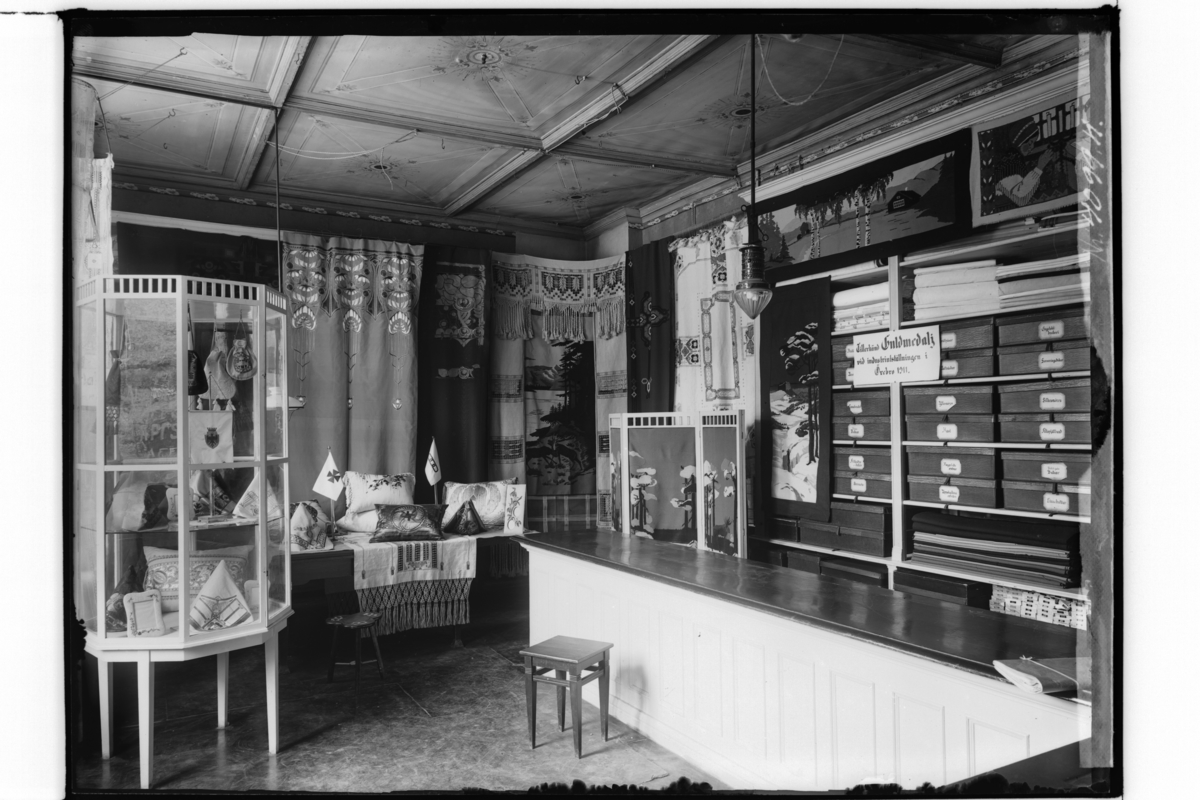 Almgrens & Carlssons Tapisseriaffär, affärsinteriör, handarbete.