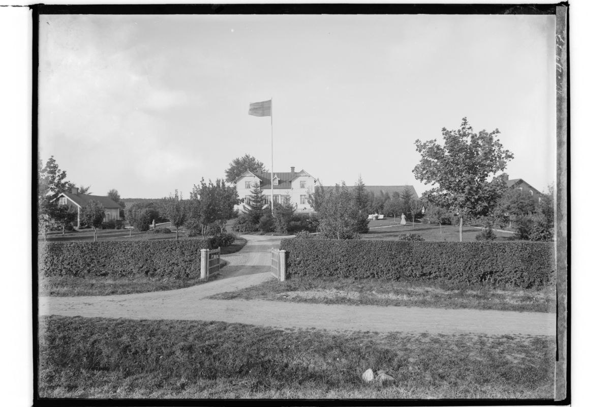 En och en halvplans bostadshus med frontespis. Ekonomibyggnader.