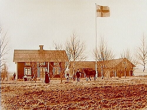 En och en halvvånings bostadshus, vinkelbyggt, ekonomibyggnad.