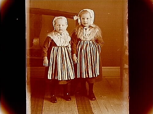 Två småflickor i folkdräkt.