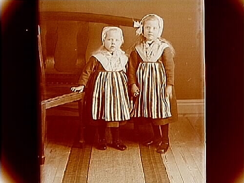 Två småflickor i folkdräkt.