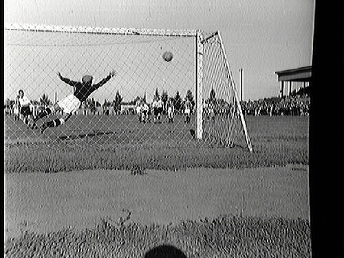 Stade Francies, Paris gör mål på ÖSK:s målvakt Berndt Karlsson.
