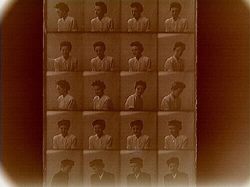 Titel: En kvinna, bröstbild. (20 st småbilder på samma glasplåt, id-kort eller körkortsbilder) Sam Lindskogs familjebild. Polyfoto.