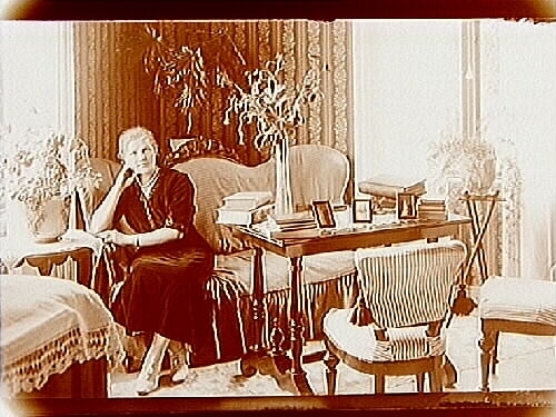 Rumsinteriör, en kvinna.