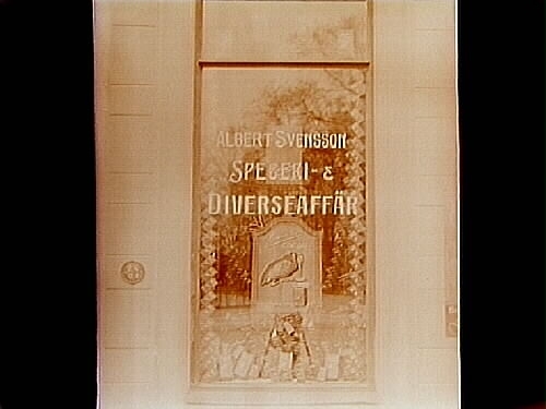 Albert Svenssons Speceri & Diversehandel, exteriör, skyltfönster.