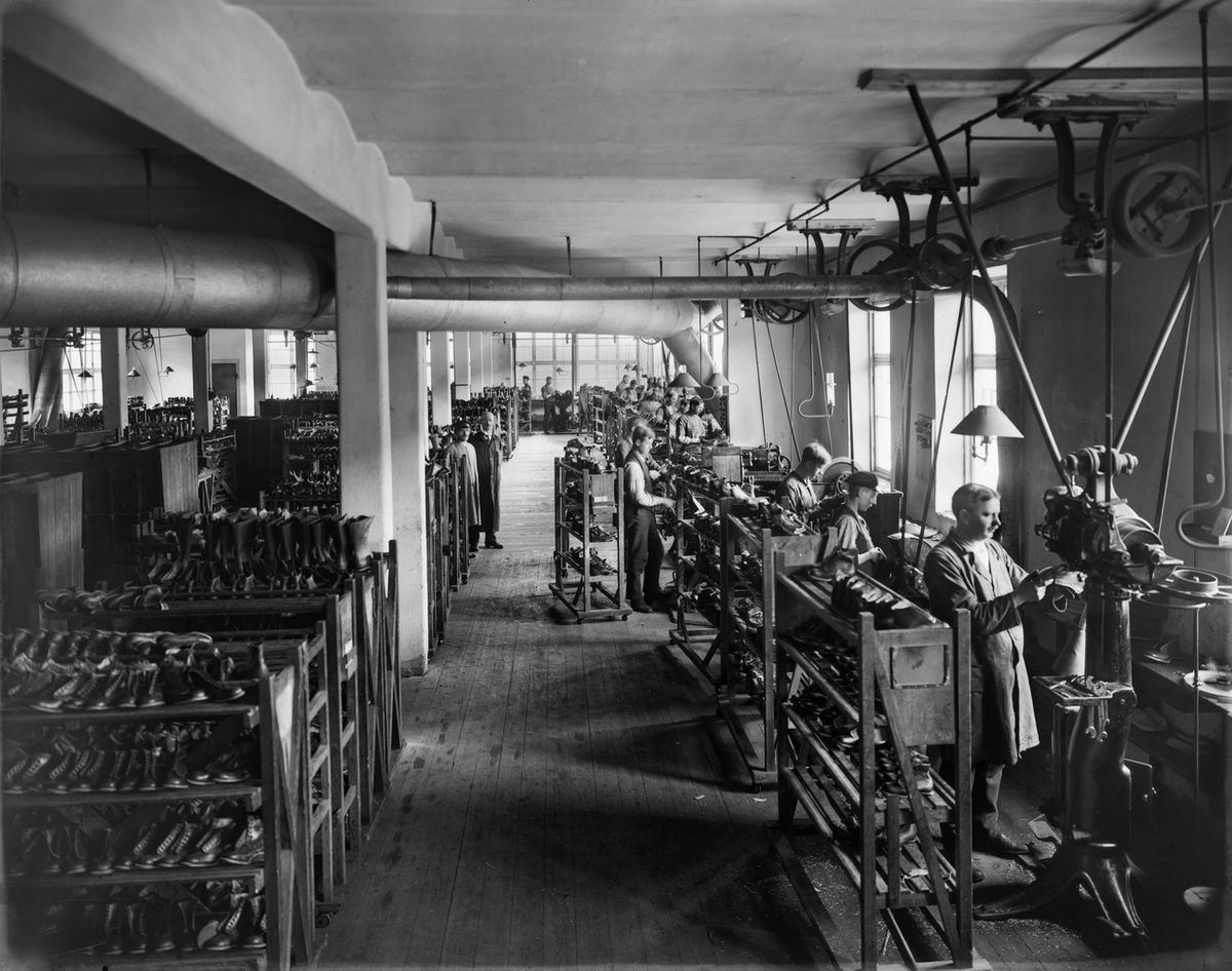 Nya Skofabriks AB Örnen, interiör från stansavdelningen.