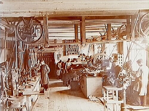 AB Skofabriken Kronan, fabriksinteriör, 8 skoarbetare.
