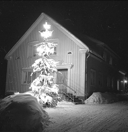 Villa, julgran framför villan.