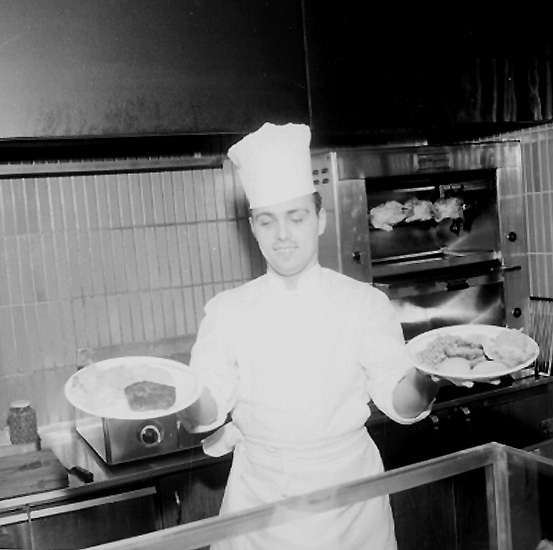 Restaurang Stortorget, interiör av köket, matlagning, en man.