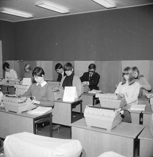 Västra Yrkesskolan, maskinskrivning, interiör, grupp.
