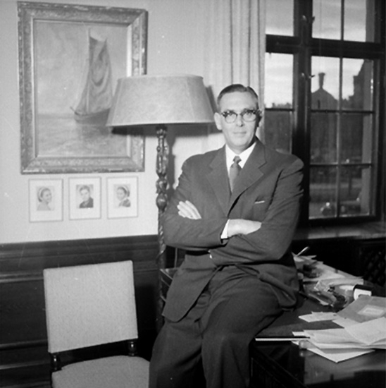 Titel: Rumsinteriör, en man. Disponent Sven Åqvist Bilden tagen för porträttmålning (målare Björklund).