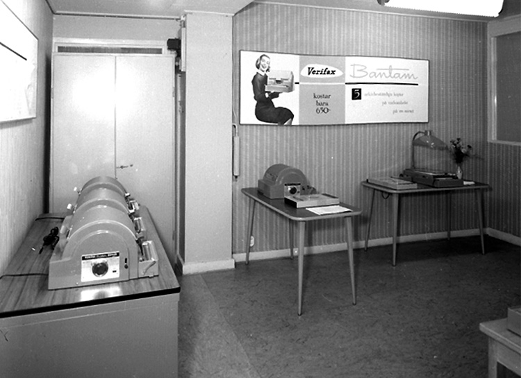 Rumsinteriör, kontorsmöbler och kontorsmaskiner.