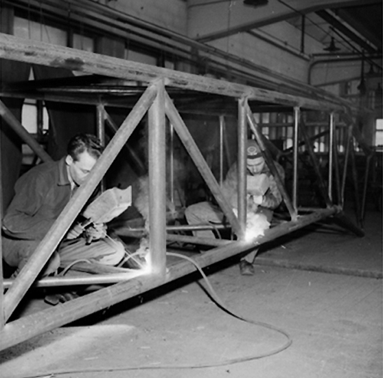 Titel: Vretstorpsverken, interiör med arbetare, svetsning.