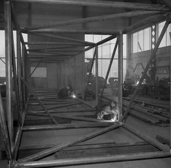 Vretstorpsverken, interiör med arbetare, svetsning.