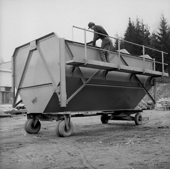Titel: Vretstorpsverken, fabriksbyggnader, jordbruksredskap, en man.