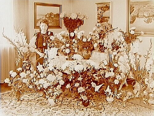 Titel: Rumsinteriör, en kvinna. Fru Rosén på födelsedagen.