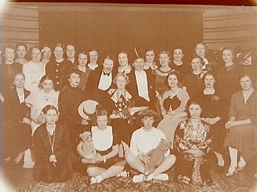 Telefonister, gruppbild 26 kvinnor, 2 män på Storgården.