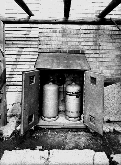 Kvarntorps Gasol, byggnaden, skåp med gasolflaskor.
