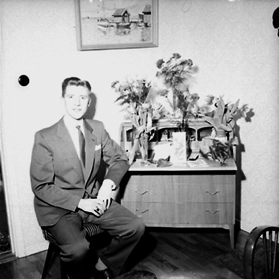 Rumsinteriör, en man, högtid.