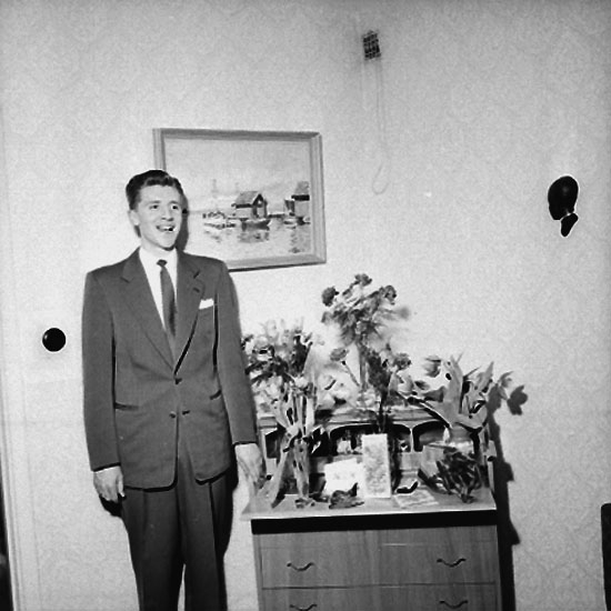 Rumsinteriör, en man, högtid.