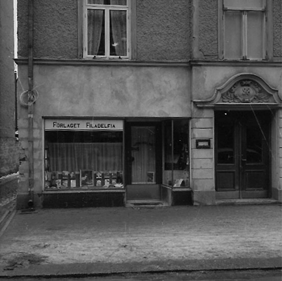 Förlaget Filadelfia, affärsbyggnad, skyltfönster.