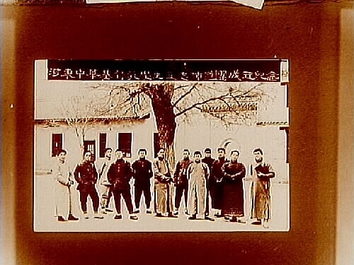 Bilder från Kina, 12 kineser framför ett hus.