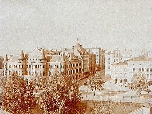 Byggnader: Nerikes Allehandas hus, Gamla Sparbanken, Teatern och AP Hallqvist-huset.