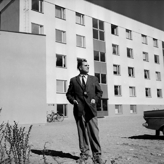 Titel: En man. Direktör B. Liedström Fabriksbyggnad i bakgrunden.