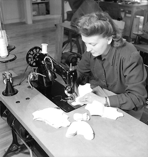 Titel: Skoyrkesskolan, interiör, en kvinna.