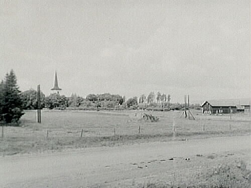 Hovsta kyrkan och bostadshus.