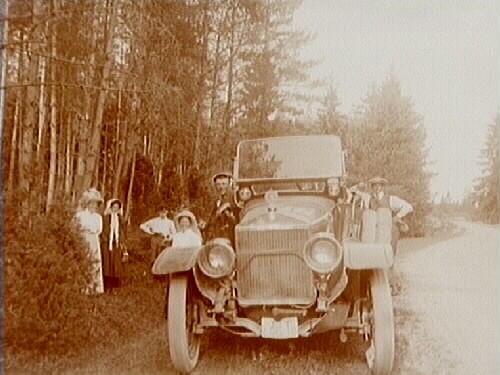 Bilen på denna bild är en Scania-Vabis från 1912-13. Den hade reg.nr. T55 och ägdes av AB Joh. Thermaenius & Son.