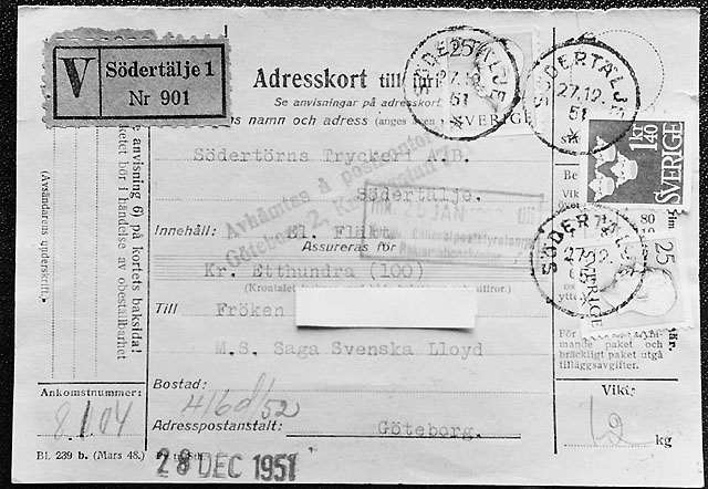 Adresskort till otillräckligt inslaget paket, gällande en hårfläkt
