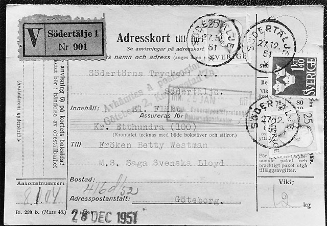 Adresskort till otillräckligt inslaget paket, gällande en hårfläkt