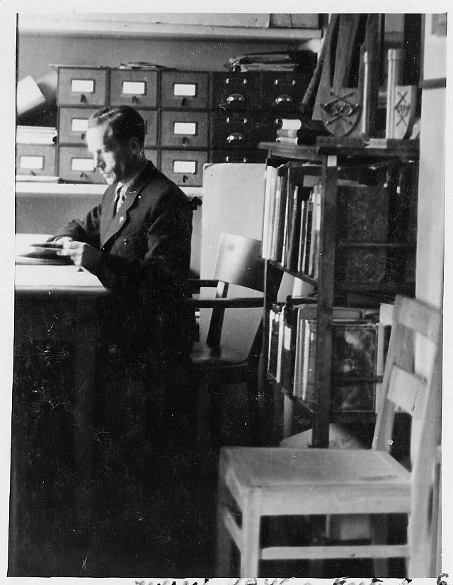 Postmuseichefen Julius Bleyer i sitt lilla arbetsrum.