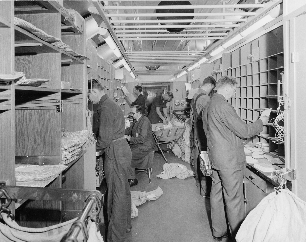 Arbete i postkupé 105 ned före avgången från Stockholm Ban.