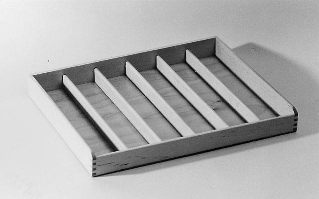 Frimärkslåda med 6 fack, av trä. För huvudförråd. Art.nr 642.36.
