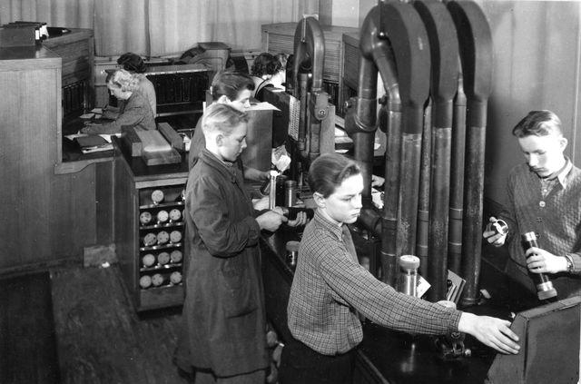 Rörpostcentralen. Bokföringsavdelningarna står via rörpost och