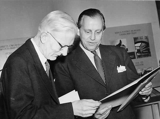 Redaktör O Cronsjö (t.h.), tidningen Folket i Bild, överlämnar