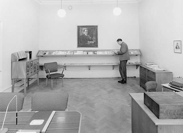Vid tidskriftshyllan fotograf Yngve Hellström,