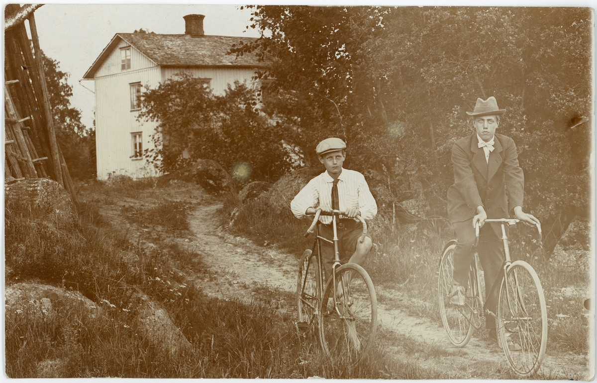 En pojke och en ung man på cykel